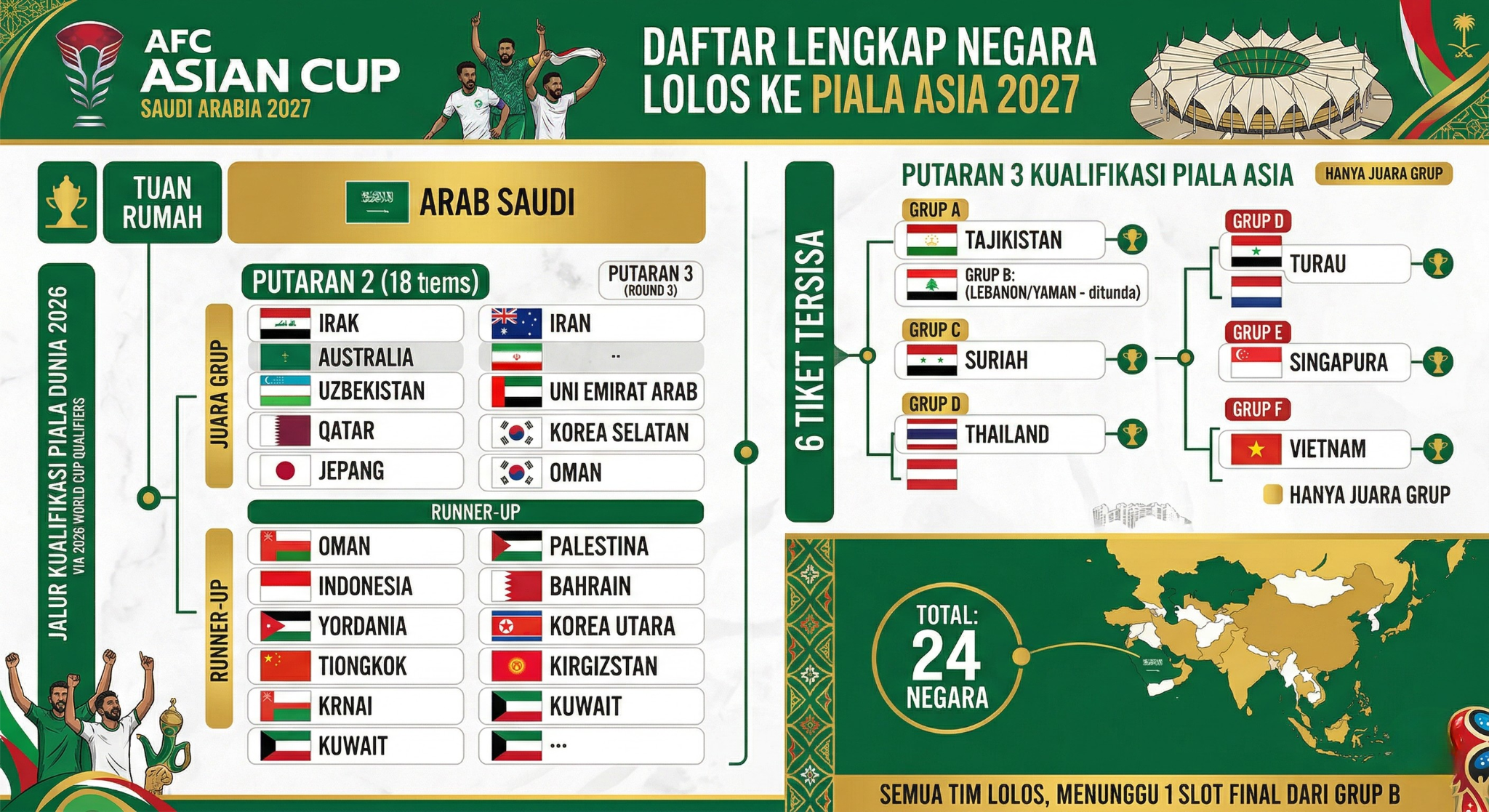 Daftar Lengkap Negara Lolos ke Piala Asia 2027